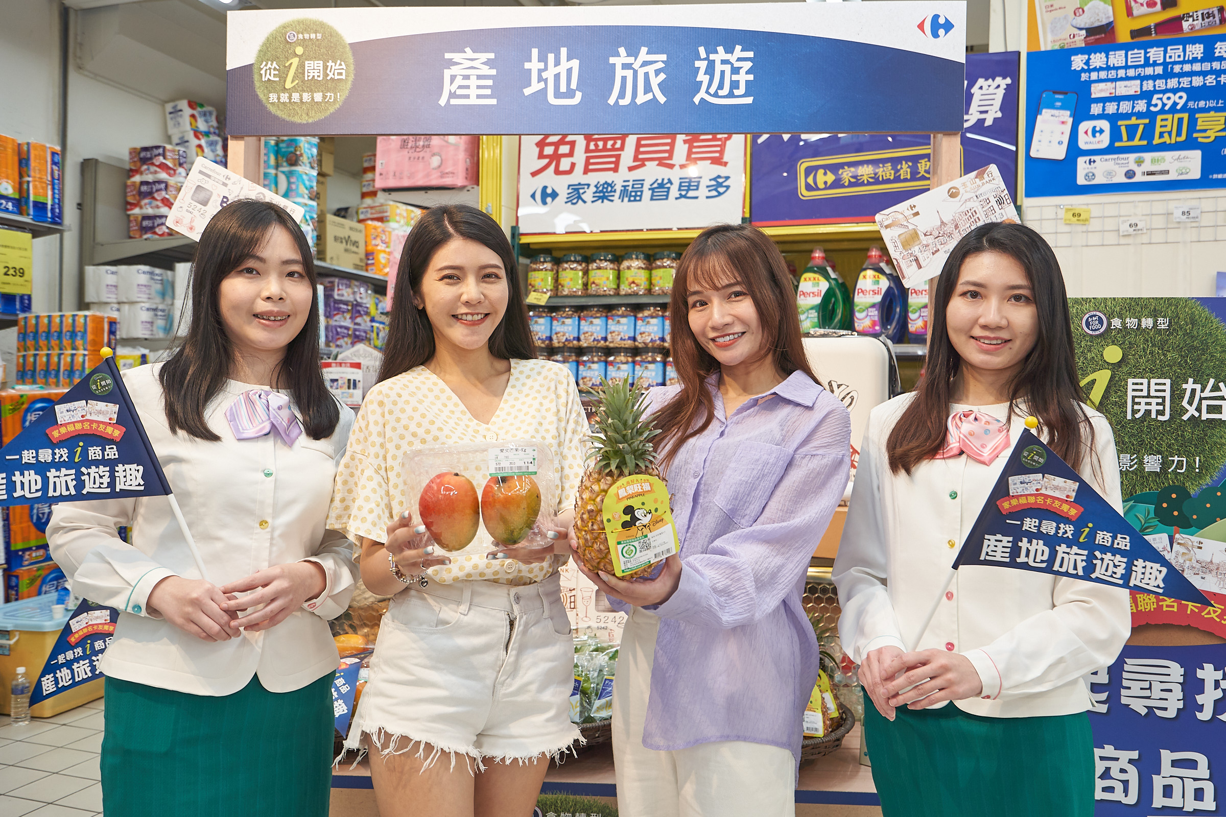家樂福永續轉型主要針對供應鏈主要議題做出解決方案,〈從i開始〉品項針對10大價值分類,包括營養飲食、無添加物、有機產品、生態農業、地方創生、動物福利、永續漁業、永續發展、減少塑料和森林保育等永續主題,品項涵蓋生鮮、食品及家庭日常所需用品,先上架約有2,500支的i商品,未來也會定期檢視及增加品項。持有家樂福玉山聯名卡的消費者,每月只要買到10個i商品就可參加APP集點抽獎,直接帶你到產地旅遊,第一場產地旅遊將於6月出發,屆時可自採收有機奶薯葉、金鑽鳳梨等。