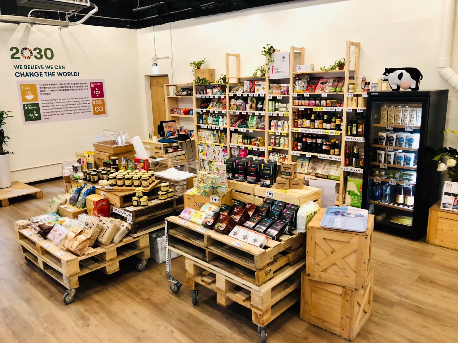 在生鮮商品挑選,特別以多樣裸賣商品為主,更多了許多不用農藥、化學肥料的有機蔬果,以及家樂福嚴選生鮮CQL,希望對於能為環境更盡一份心力,現場許多無添加、少添加的麵包,全部使用健康的安佳奶油,讓消費者吃得更健康,不僅如此,還有許多非籠飼機蛋的商品,同時更有許多有故事、有理念的地方特色商品、社企商品、公平貿易的商品也是特別的亮點。