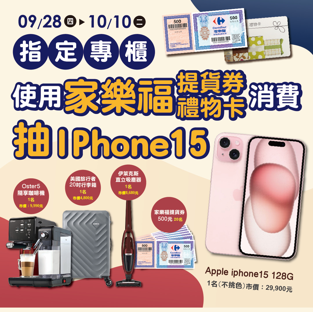 家樂福商店/美食餐廳抽I PHONE15!!